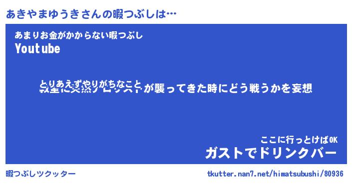 | 伝説のあだ名 | 『封印されしスナイパーあきやまゆうき』 |