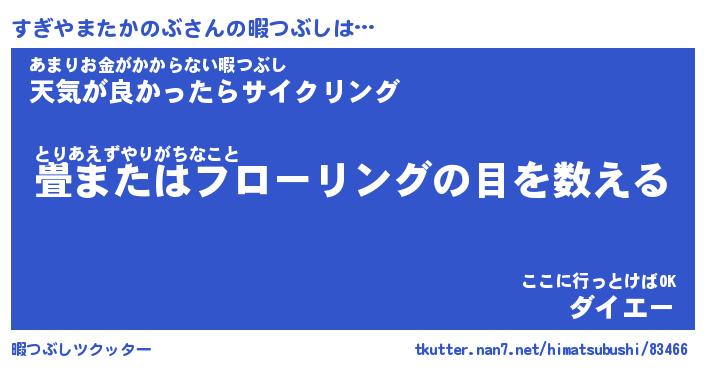 | 2回繰り返すあだ名 | 『すぎすぎ』『すすぎぎ』『ぬれぬれ』 |