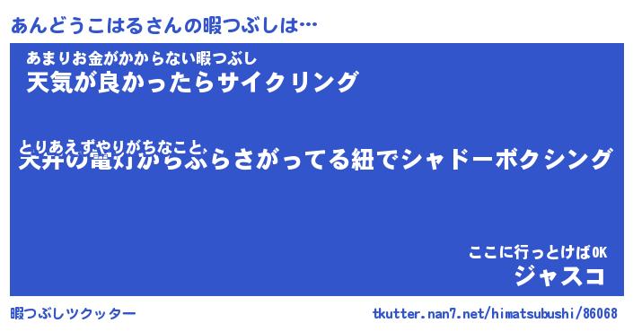 | 胡散臭い通販商品みたいなあだ名 | 『モテモテ間違いなし水晶球…その名も「あんどうこはる」』 |