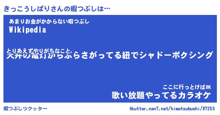 | 男性向けラノベタイトル風あだ名 | 『キッコウシバリアートオンライン』 |