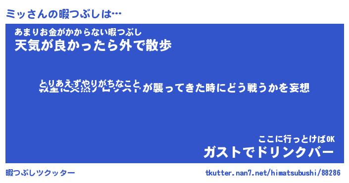 | ヘコむあだ名 | 『ミッふぇ~』『なまこ酢』『ミッお』 |