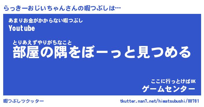 | 伝説のあだ名 | 『伝説のスナイパーらっきーおじいちゃん』 |