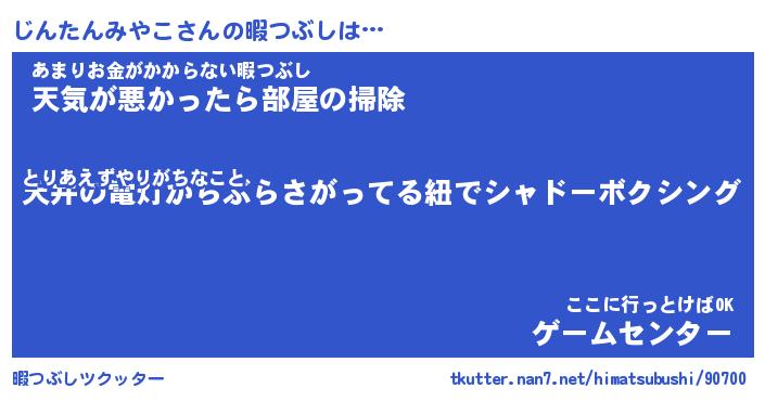 | ツイッター | じんたんみやこさんのツイッターID『katatsumuri_idle』 |