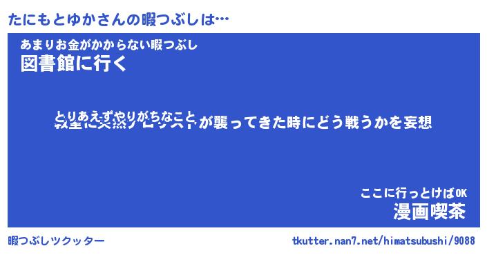 | ヒーロー風カッコイイあだ名 | 『スーパータニモトユカ』『天弓騎士タニ』 |