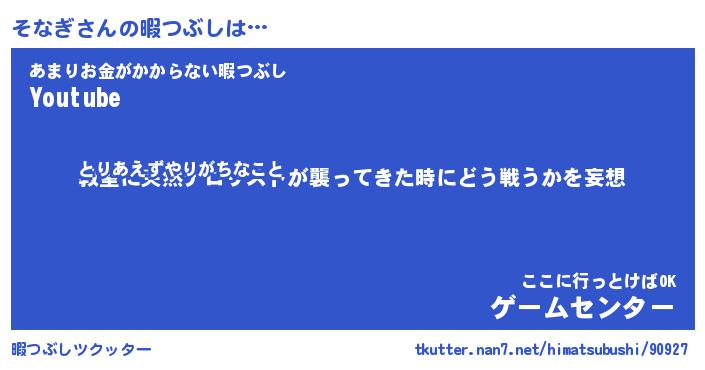 | 伝説のあだ名 | 『封印されしスナイパーそなぎ』 |