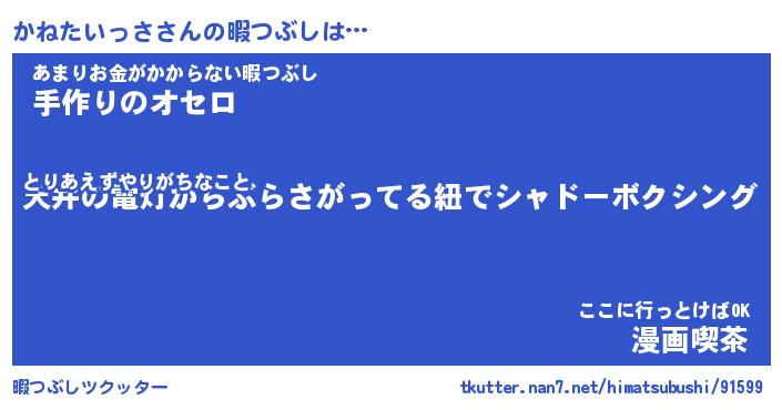 | ヒーロー風カッコイイあだ名 | 『スーパーカネタイッサ』『天弓騎士カネ』 |