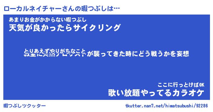 | ヒーロー風カッコイイあだ名 | 『スーパーローカルネイチャー』 |