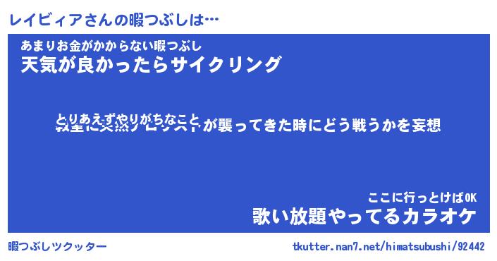 | ファンタジー風あだ名 | 『レイフェル』『エターナルレイビィアー』 |