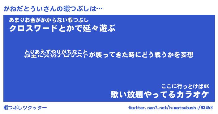 | ヒーロー風カッコイイあだ名 | 『スーパーカネダトウイ』『銀牙騎士カネ』 |