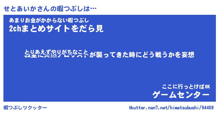 | ヘコむあだ名 | 『せとにー』『牛乳』『せとぷりん』 |