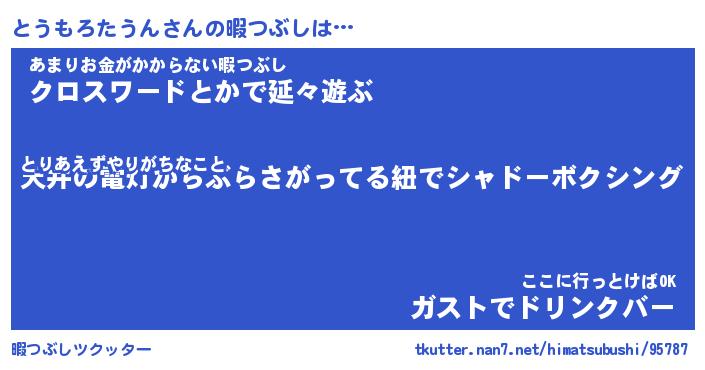 | ヘコむあだ名 | 『とうふぇ~』『つくし』『とうお』 |