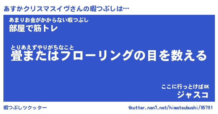 | 男性向けラノベタイトル風あだ名 | 『あすかクリスマスイヴの憂鬱』 |