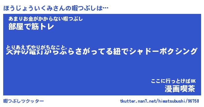 | 男性向けラノベタイトル風あだ名 | 『ホウジョウイクミアートオンライン』 |