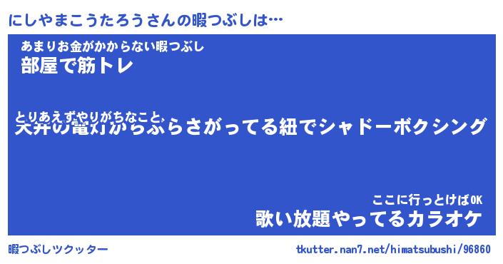 | 肩書あだ名 | 『にしやまこうたろう御曹司』 |