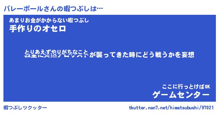 | ヒーロー風カッコイイあだ名 | 『スーパーバレーボール』『暗黒騎士バレ』 |