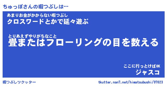 | 男性向けラノベタイトル風あだ名 | 『ちゅっぽの憂鬱』 |