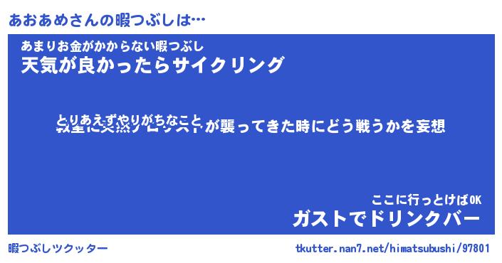 | 伝説のあだ名 | 『封印されしスナイパーあおあめ』 |