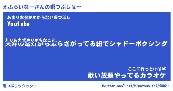 | ヘコむあだ名 | 『えふにー』『なまこ酢』『えふ太郎』 |