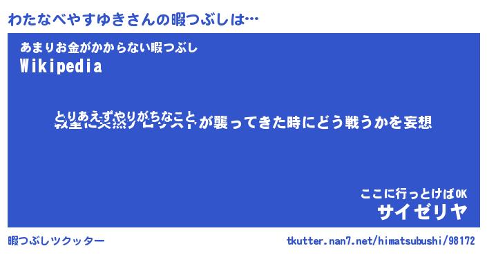 | 伝説のあだ名 | 『封印されし傭兵わたなべやすゆき』 |