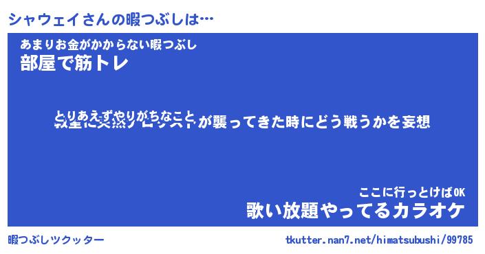 | ヒーロー風カッコイイあだ名 | 『スーパーシャウェイ』『銀牙騎士シャ』 |