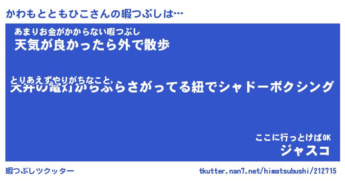 | 肩書あだ名 | 『かわもとともひこ御曹司』 |