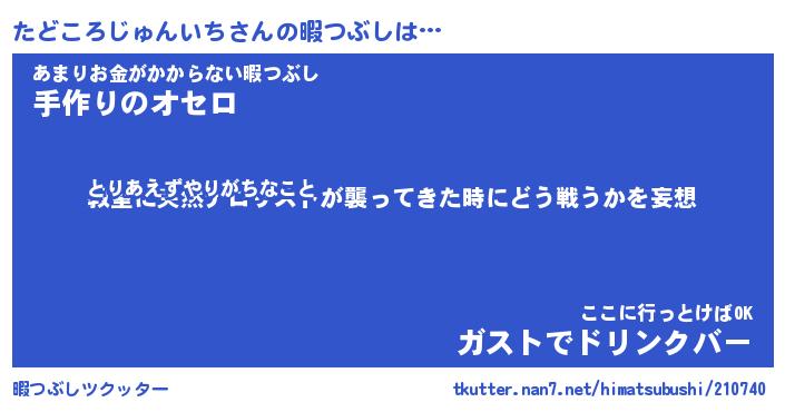 | ヒーロー風カッコイイあだ名 | 『スーパータドコロジュンイチ』 |