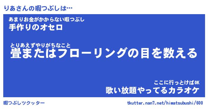 | ヘコむあだ名 | 『りあっふぃ~』『つくし』 |
