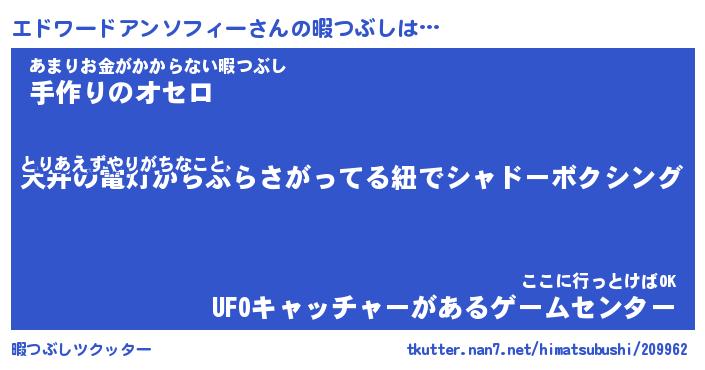 | 胡散臭い通販商品みたいなあだ名 | 『モテモテ間違いなし霊験あらたかなお札…その名も「エドワードアンソフィー」』 |