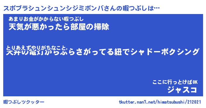 | 胡散臭い通販商品みたいなあだ名 | 『モテモテ間違いなし霊験あらたかなお札…その名も「スポブラシュンシュンシジミボンバ」』 |