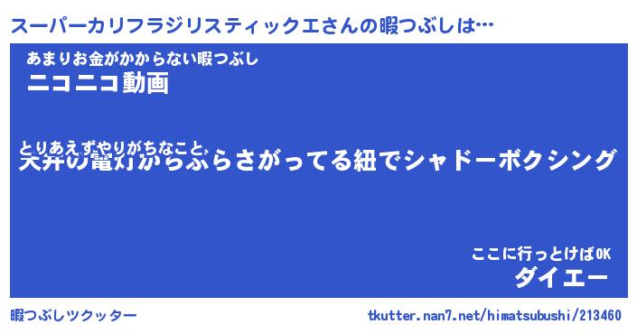 | ツイッター | スーパーカリフラジリスティックエさんのツイッターID『namakemono_man』 |