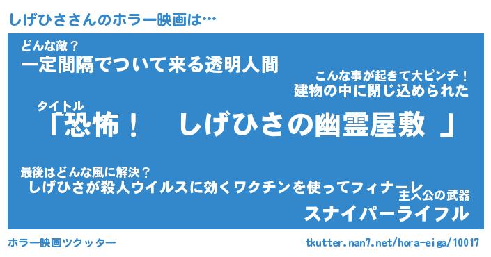 | ヒーロー風カッコイイあだ名 | 『スーパーシゲヒサ』『幻影騎士シゲ』 |