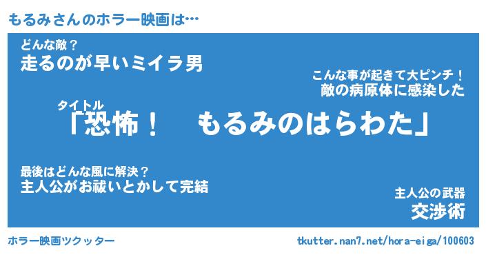 | 男性向けラノベタイトル風あだ名 | 『もるみの憂鬱』 |