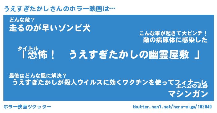 | 男性向けラノベタイトル風あだ名 | 『うえすぎたかしの憂鬱』 |