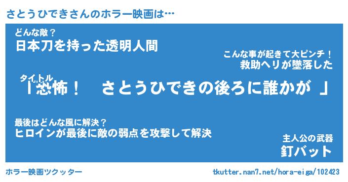 | ヒーロー風カッコイイあだ名 | 『スーパーサトウヒデキ』『天弓騎士サト』 |