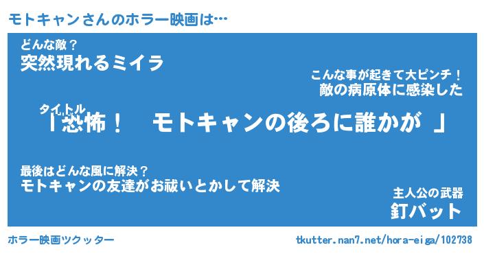 | 男性向けラノベタイトル風あだ名 | 『モトキャンの憂鬱』 |