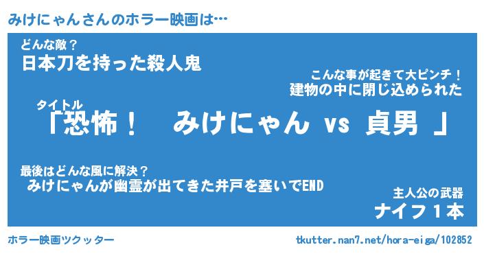 | 男性向けラノベタイトル風あだ名 | 『みけにゃんの憂鬱』 |
