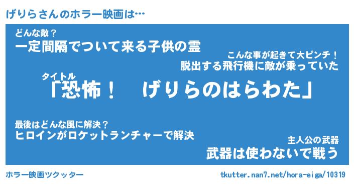 | 男性向けラノベタイトル風あだ名 | 『げりらの憂鬱』 |