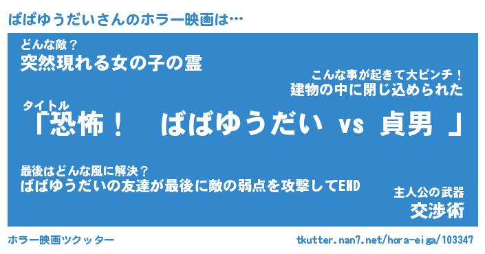 | 男性向けラノベタイトル風あだ名 | 『ばばゆうだいの憂鬱』 |