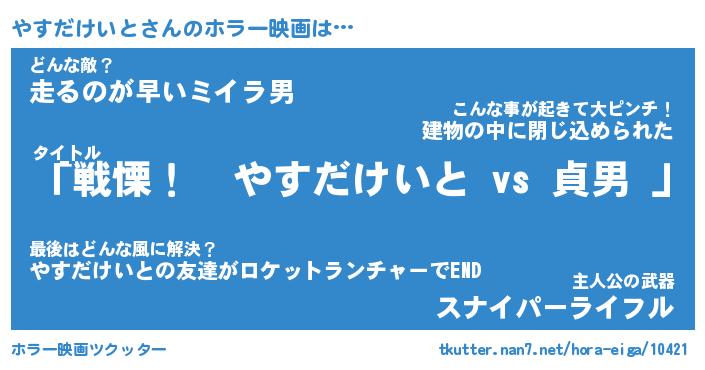 | ヒーロー風カッコイイあだ名 | 『スーパーヤスダケイト』『幻影騎士ヤス』 |