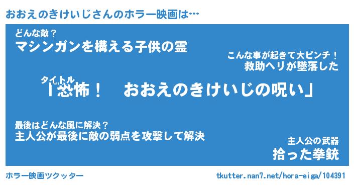 | 男性向けラノベタイトル風あだ名 | 『おおえのきけいじの憂鬱』 |