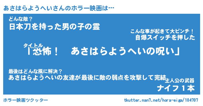 | 男性向けラノベタイトル風あだ名 | 『あさはらようへいの憂鬱』 |