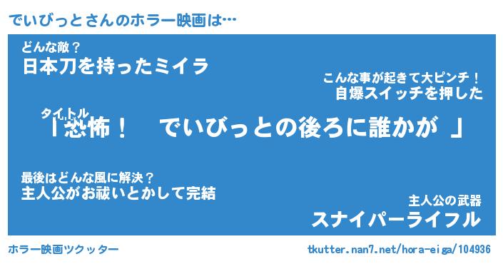 | 男性向けラノベタイトル風あだ名 | 『でいびっとの憂鬱』 |