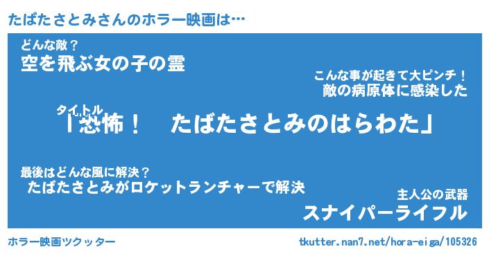 | 男性向けラノベタイトル風あだ名 | 『たばたさとみの憂鬱』 |