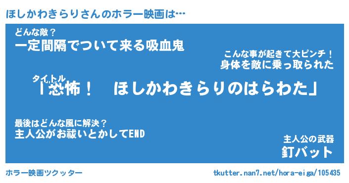| 胡散臭い通販商品みたいなあだ名 | 『必ず成功するブレスレット…その名も「ほしかわきらり」』 |