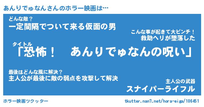| 男性向けラノベタイトル風あだ名 | 『あんりでゅなんの憂鬱』 |