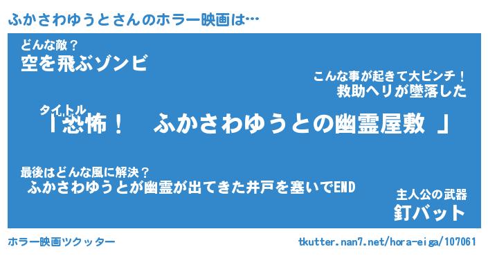 | 男性向けラノベタイトル風あだ名 | 『ふかさわゆうとの憂鬱』 |