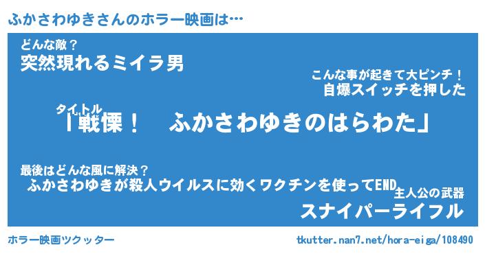 | ヒーロー風カッコイイあだ名 | 『スーパーフカサワユキ』『幻影騎士フカ』 |