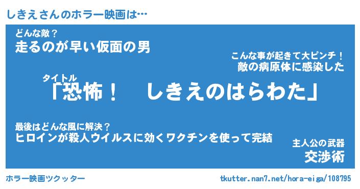 | 男性向けラノベタイトル風あだ名 | 『しきえの憂鬱』 |