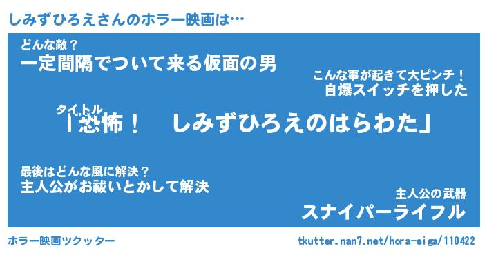 | ヒーロー風カッコイイあだ名 | 『スーパーシミズヒロエ』『魔戒騎士シミ』 |