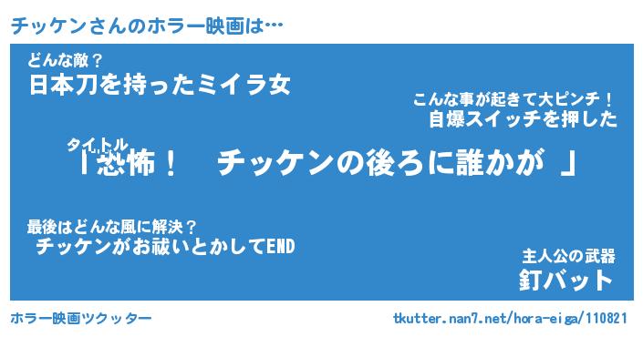 | ヒーロー風カッコイイあだ名 | 『スーパーチッケン』『魔戒騎士チッ』 |